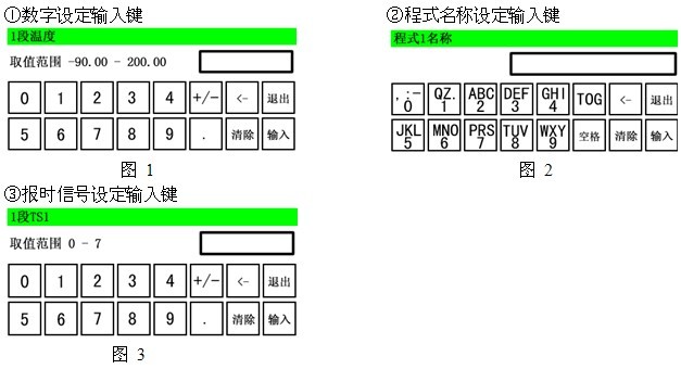 采用了觸摸屏方式,是通過對話式畫面使客戶易于使用而設計的恒溫恒濕可編程控制器。注:如果錯誤的輸入了數據,就會在如下輸入值顯示窗口出錯誤信息(輸入錯誤!)